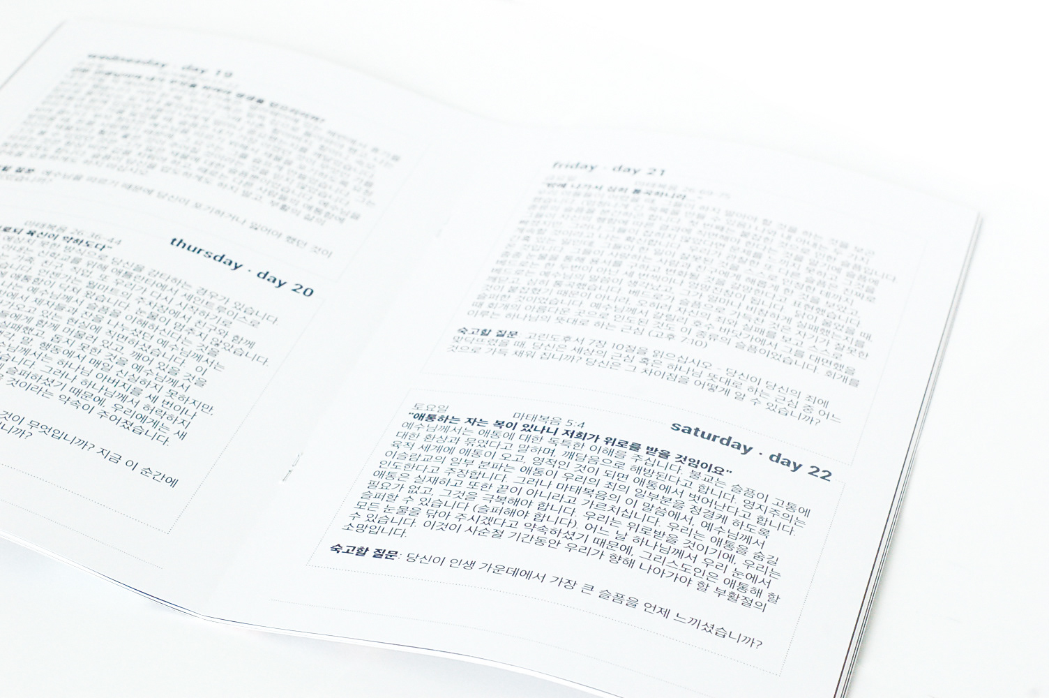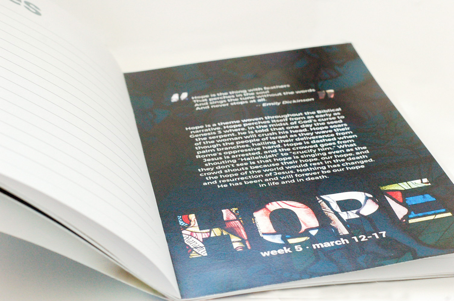 These booklets were presented to the congregation of the church to be study guides and the art was used for signage, on the app, and as a landing page for other Easter related information. The booklet was also translated into Korean.