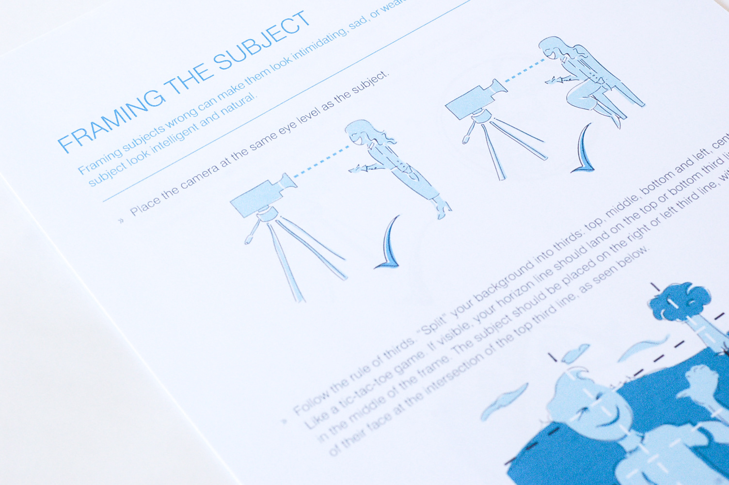This prompt was simply to create stylized illustrations for Fifteen4 integrated media's video guidelines sent out to contractors. The goal was to create images to help clarify the filming instructions, while keep it light and fun to reflect what was - at the time - a smaller, casual start-up company.